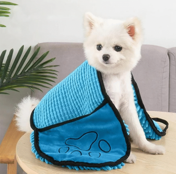 - Hecho de fibras absorbentes y permeables, para el agua del pelaje del perro y secado rápido Textura es cómoda y transpirable Material: poliéster, chinlon